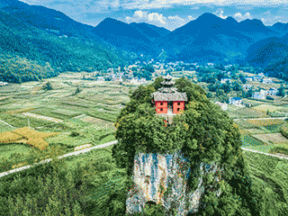 终于到达望坪,绕过望坪中学后,见一座巨大的石山,在望坪坝的十里平川中拔地而起,突兀抢眼,那便是古建始八景之一的道教文化景点石柱观。